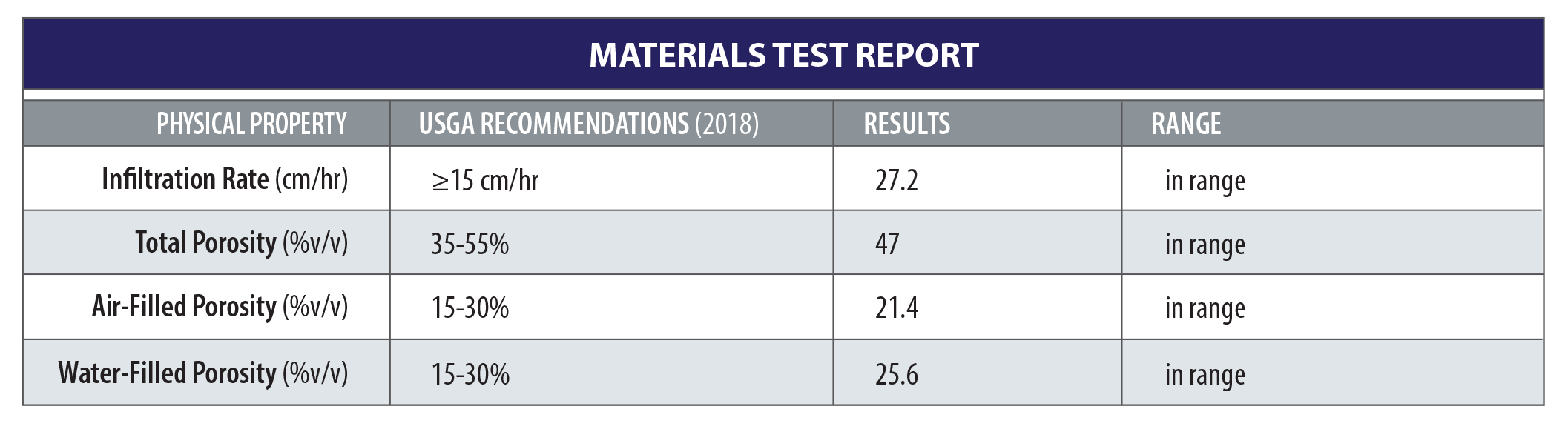 Golf greens rank among the world’s most highly engineered landscapes. According to the United States Golf Association (USGA), golf greens must provide performance and pristine playing conditions while under almost continual use and with minimal maintenance. Among the most important aspects to ensuring a green’s success is the infiltration rate. Greens must be able to absorb heavy moisture levels from rainfall or irrigation in a short amount of time, while resisting compaction and maintaining balanced air, water and nutrient conditions.